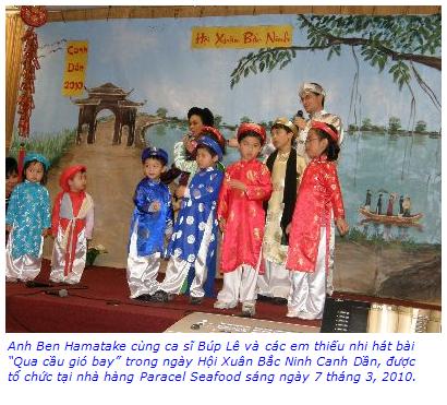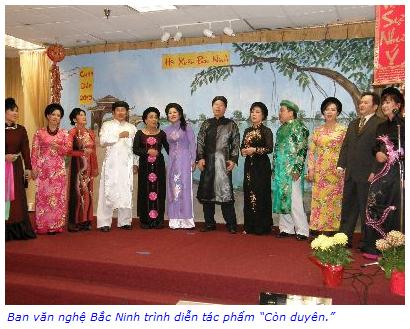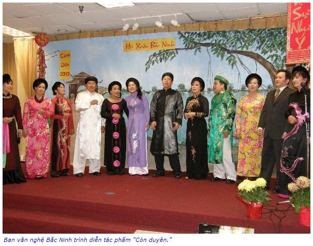 Mọi người đã dành những tràng pháo tay giòn giã tặng thưởng cho những mầm non âm nhạc, những tiếng hát thiếu nhi của trường nhạc spotlight, dù mới lần đầu lên sân khấu, nhưng thật dạn dĩ góp tiếng hát mừng Xuân. Đặc biệt hơn, chính là sự xuất hiện lần đầu của con rể Bắc Ninh, anh Bem Hamatake, người Mỹ trắng, một “liền anh” thật điêu luyện, khi đối đáp cùng liền chị Búp Lê trong bài “Qua cầu gió bay,” các liền anh, liền chị của ban văn nghệ Bắc Ninh trong “Còn duyên,” cùng những tiếng hát của đồng hương Bắc Ninh trong hoạt cảnh “Quay tơ.” Hát chầu văn “Nhớ mẹ ta xưa...” Không khí Xuân tưng bừng không chỉ bởi những làn điệu, những lời hát hay, mà còn bởi tình đồng hương yêu văn hóa Bắc Ninh.